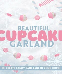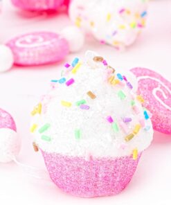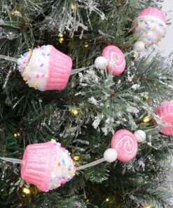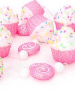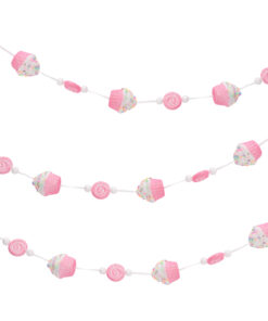1.5m (4ft 9″) Sparkly Cupcake Garland With Sprinkles & Iridescent Glitter – Candy Theme Birthday/Christmas Decorations