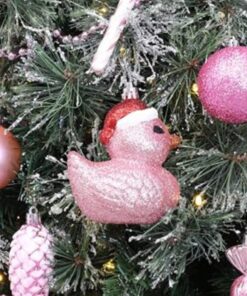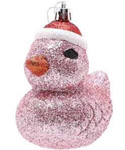 - Transform your Christmas tree with these delightful duck baubles! Each bauble is coated with Baby Pink glitter and adorned with a dapper Santa hat, adding a touch of festive flair to your seasonal display.