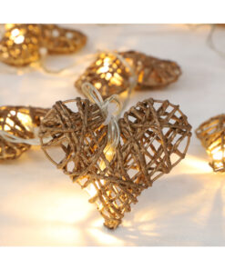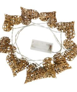 10 Gold Rattan Heart Fairy Lights With Warm White LEDs – 1.5m – Battery Operated – Bedroom Lights