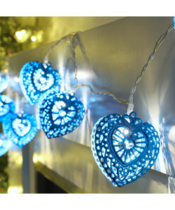10 Warm White LED Metal Filigree Turquoise Heart Shaped Fairy Lights – Christmas Lights – Everyday Lights – Bedroom Lights
