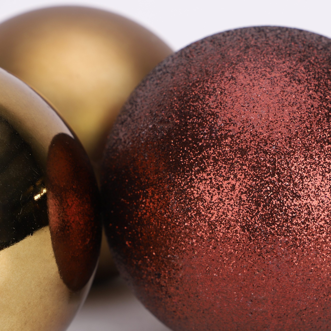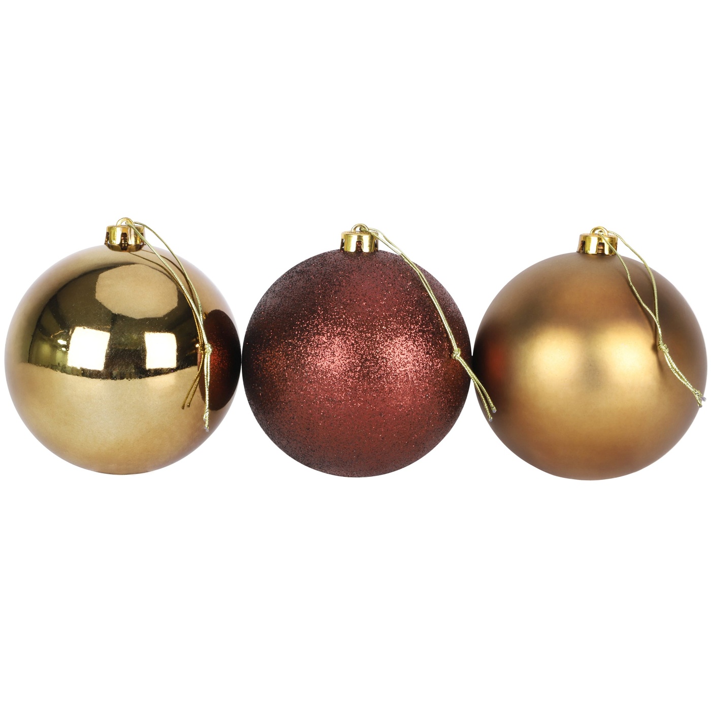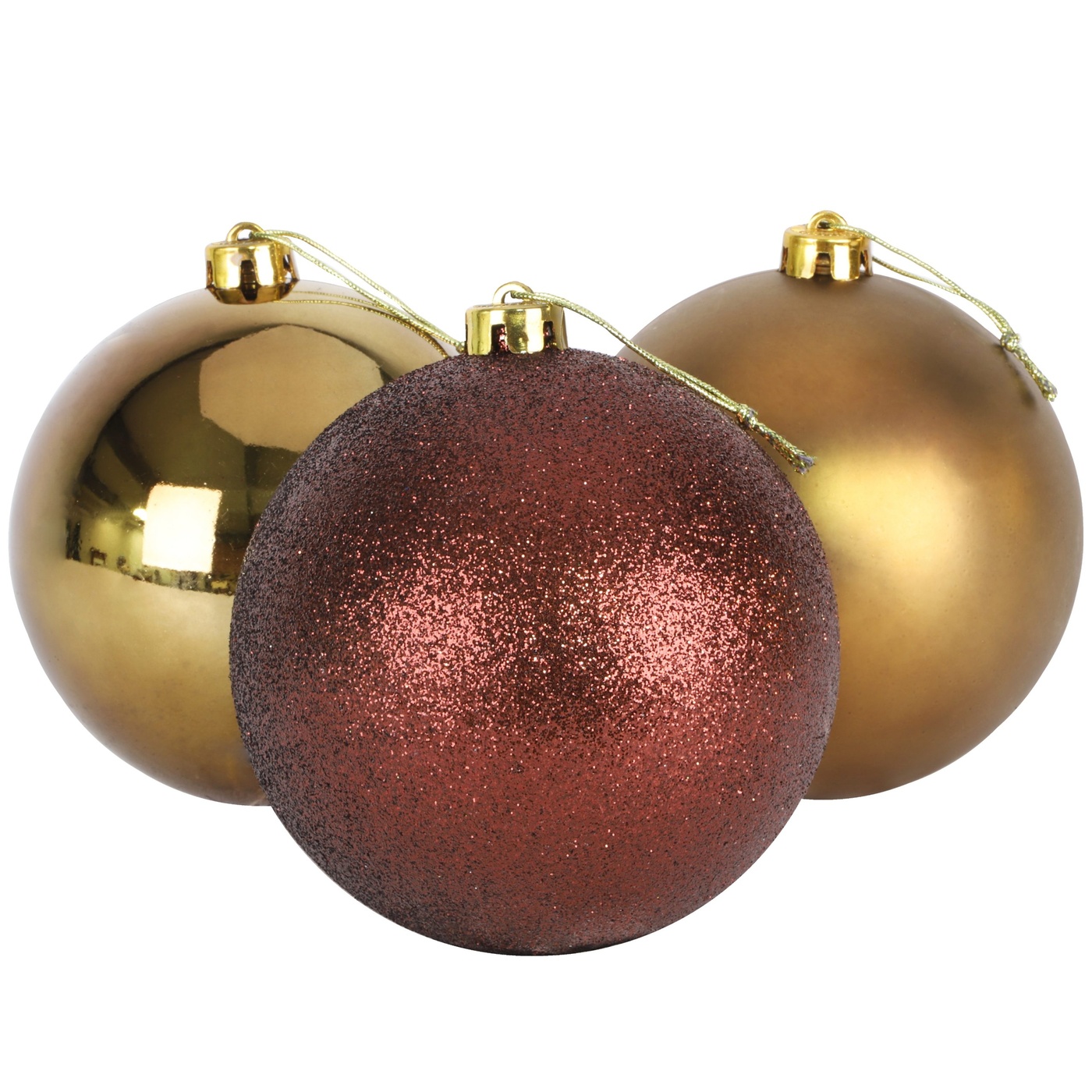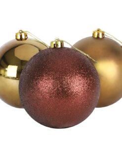 - This pack contains 3 chocolate coloured baubles in total, including an assortment of glitter, matte and shiny designs.