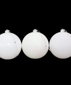 - This pack contains 3 white baubles in total, including an assortment of glitter, matte and shiny designs.
