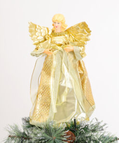 Elevate your Christmas tree to heavenly heights with this exquisite tree top angel. Standing at approximately 30cm (12 inches) tall, they add a touch of enchantment to any tree they are on. The angel is formed from a lightweight material, ensuring effortless placement on a variety of tree sizes and types. This angel is wearing a gold dress and is perfect for people who like a traditional look to their tree. Designed and manufactured exclusively for Christmas Concepts Ltd.