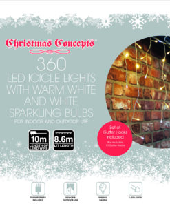 Christmas Concepts® 360 8.6M/29FT Warm White with White Twinkle Icicle Lights – Christmas Outdoor Lighting – Energy Efficient A++