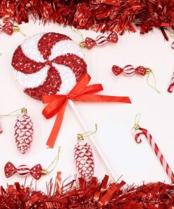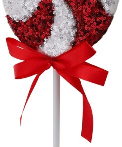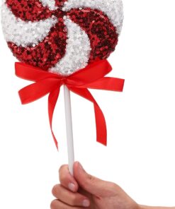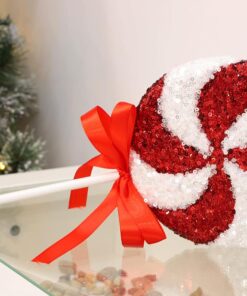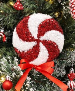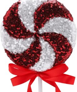 36cm Giant Sparkly Sequin Lollipop Christmas Decoration – Red & White – Christmas Tree Ornaments