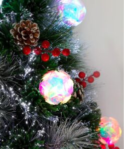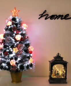 Light up any space and instantly create a festive atmosphere with our 3ft Tree – no need to decorate, simply plug in and enjoy. The tree has a setting for everyone with 37 different light speed and colour combinations including an ‘off’ setting using the handy controller (please note the bright white fibre optics do not have an off function). Comes pre decorated with berries, pinecones, LED baubles, LED star ornaments, an LED tree top star and a gold base. Measures 3ft (36″) tall with 3m lead wire and 12V 3.6W Indoor DC Transformer. Designed and manufactured exclusively for Christmas Concepts.