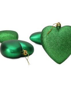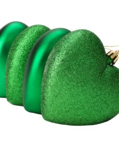 4-100mm Heart Shaped Baubles – Matte & Glitter Design – Christmas Decoration (Emerald Green)