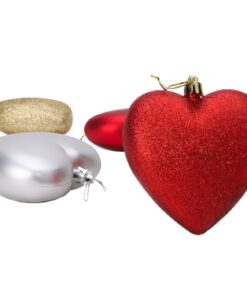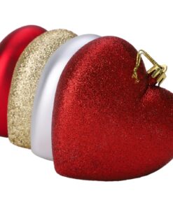 4-100mm Heart Shaped Baubles – Matte & Glitter Design – Christmas Decoration (Red, Silver & Gold)