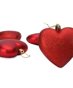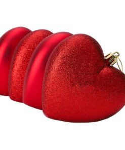 4-100mm Heart Shaped Baubles – Matte & Glitter Design – Christmas Decoration (Red)