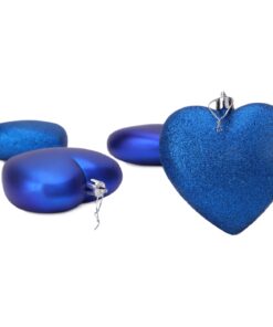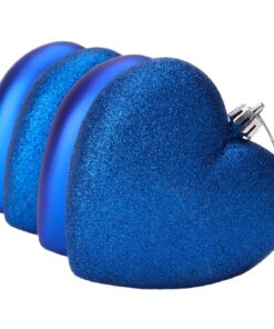 4-100mm Heart Shaped Baubles – Matte & Glitter Design – Christmas Decoration (Royal Blue)