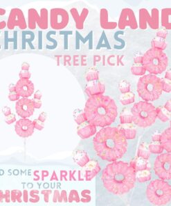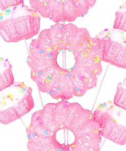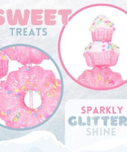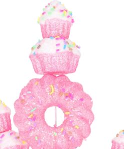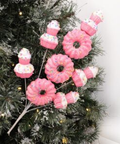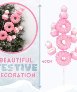 40cm (16″) Cupcake & Donut Candy Theme Glittery Christmas Tree Pick – DIY Garland/Wreath/Flower Arrangements – Christmas Stem Ornaments (Pink)