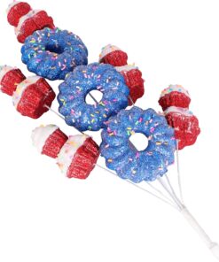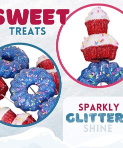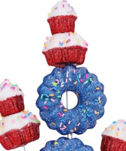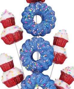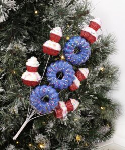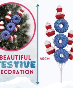 40cm (16″) Cupcake & Donut Candy Theme Glittery Christmas Tree Pick – DIY Garland/Wreath/Flower Arrangements – Christmas Stem Ornaments (Red & Blue)