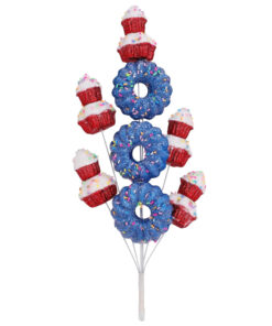40cm (16″) Cupcake & Donut Candy Theme Glittery Christmas Tree Pick – DIY Garland/Wreath/Flower Arrangements – Christmas Stem Ornaments (Red & Blue)