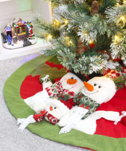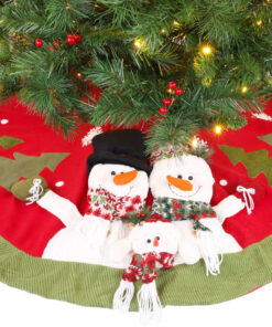 48 Inch Beautiful Christmas Tree Skirt In Red & Green With Snowman Family