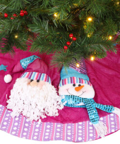 48 Inch Beautiful Pink & Purple Christmas Tree Skirt With Santa & Snowman