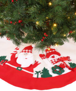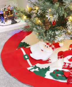 48 Inch Beautiful Red & White Christmas Tree Skirt With Santa & Snowman