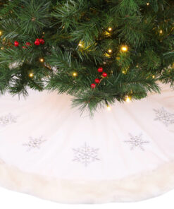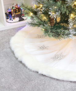 48 Inch Beautiful White Christmas Tree Skirt – With Snowflakes