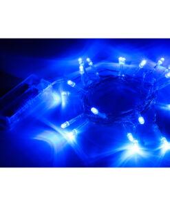 These blue LED lights are a brilliant edition to your home décor. The fairy lights look great on shelves, walls, stairs, mantle pieces and any spaces that require extra easy lighting. The clear discreet cable makes them an elegant touch. They are perfect for weddings, birthdays, baby showers and other upcoming parties. Simply use them as table and wall decorations or get creative and add them to jars and other DIY décor ideas. Blue LED lights shine brighter than normal bulbs to stand out wherever placed. There are 20 lights on a discreet clear 1.8m cable and battery pack. Battery operated & requires 2 x AA batteries (not included). For indoor Use Only.