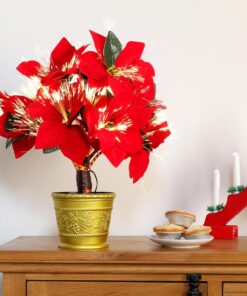 - The infamous bright red flowers make the ideal centre piece to your Christmas décor creating a warm and cosy ambience with warm white fibre optics.
