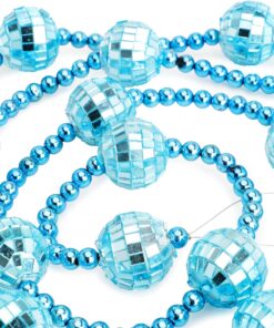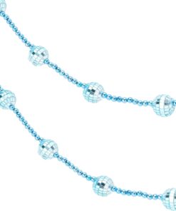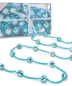 - This garland measures 1.8m (5ft 9″) and comes decorated with mini disco balls and beads with string loop attachments either end for easy hanging.