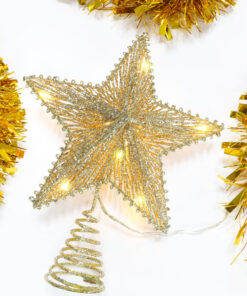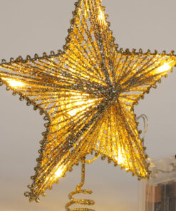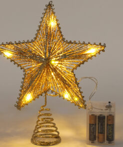 This tree top star will look amazing on top of your tree. The decoration would also look great on a mantle piece or on your office desk. The gorgeous star decoration has warm white LED lights. LED lights are super bright and long life. The star takes 3 x AA batteries. Product size 20.5 x 8 x25cm .