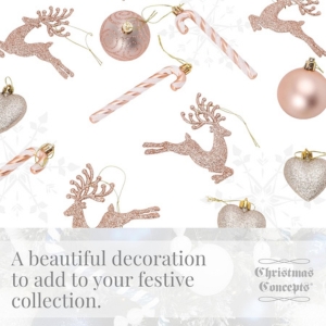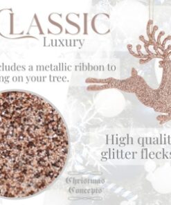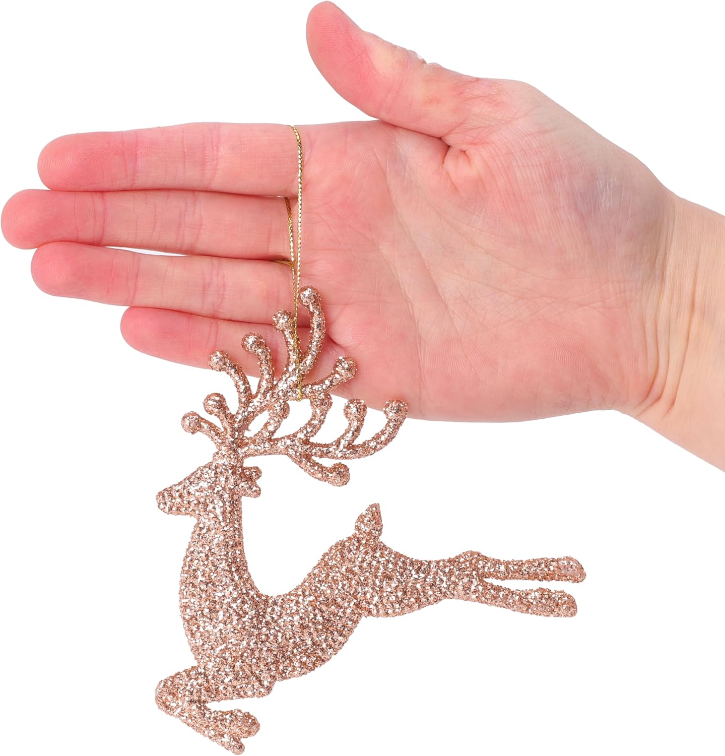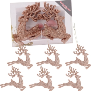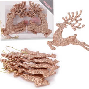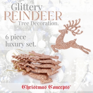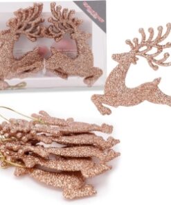 • You will receive a pack of 6 glittery champagne reindeer baubles each measuring 100mm (4″).