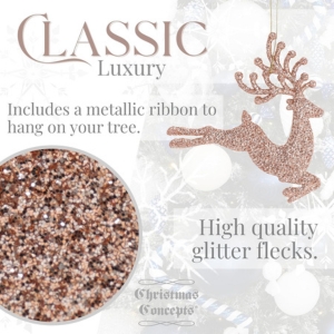 Christmas Concepts® 100mm (4″) Pack Of 6 Glittery Reindeer Baubles – Christmas Tree Decorations (Champagne)