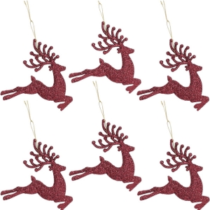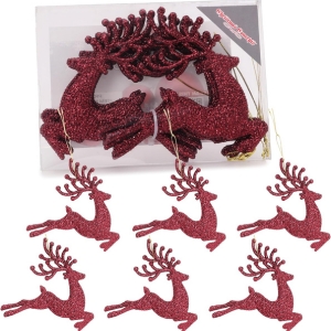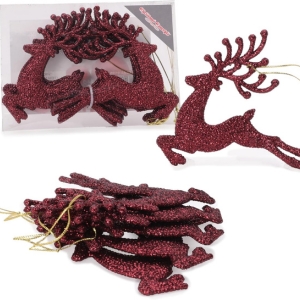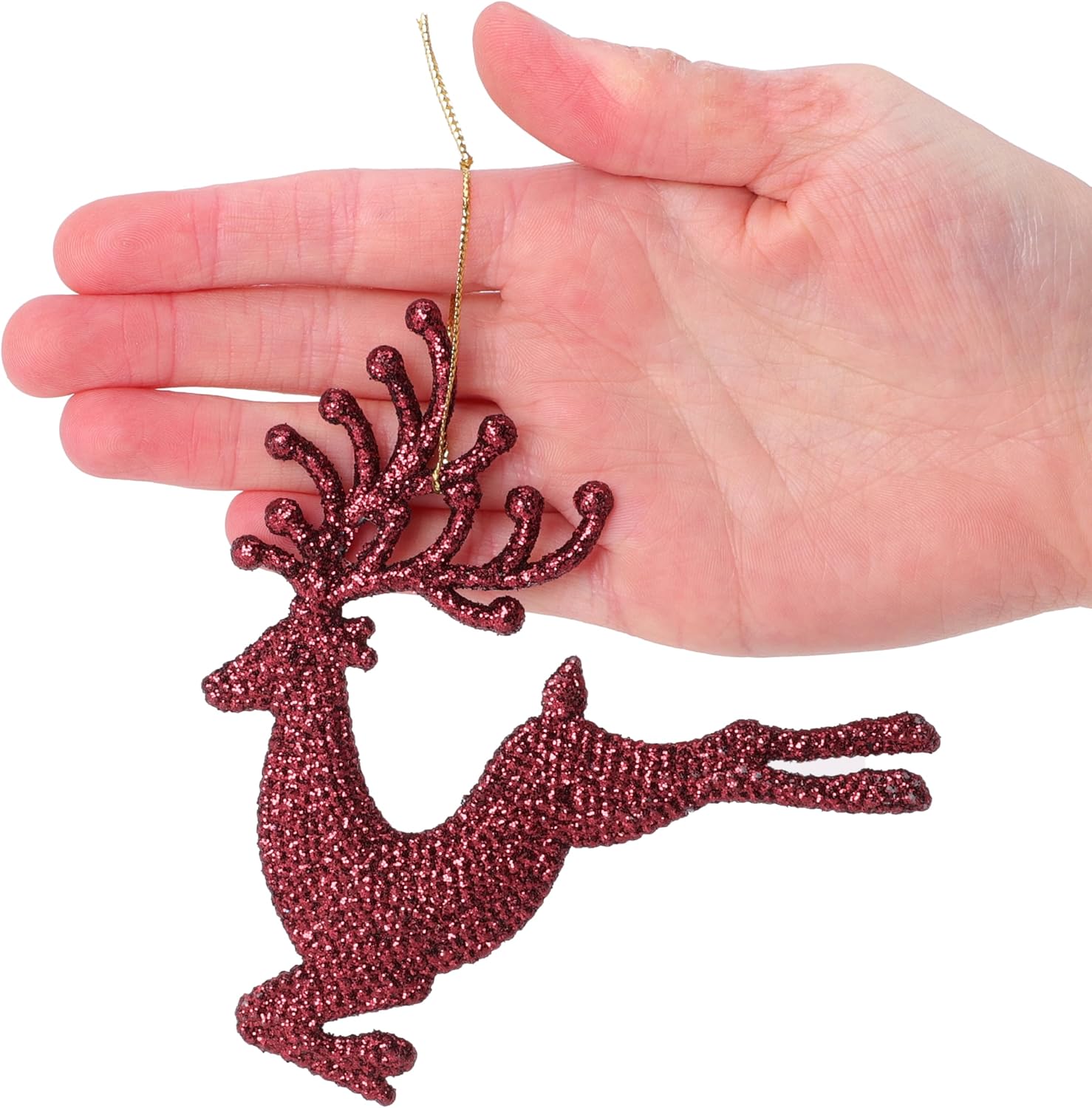 Christmas Concepts® 100mm (4") Pack Of 6 Glittery Reindeer Baubles - Christmas Tree Decorations (Rioja Red)