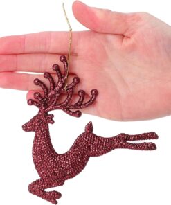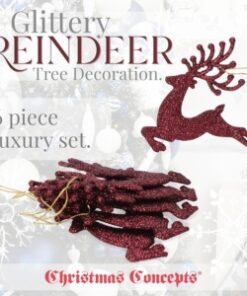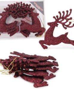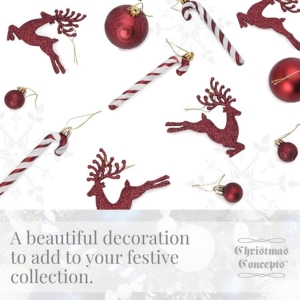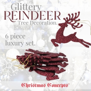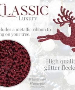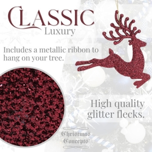 Christmas Concepts® 100mm (4″) Pack Of 6 Glittery Reindeer Baubles – Christmas Tree Decorations (Rioja Red)