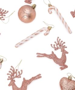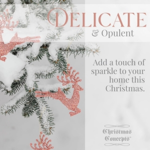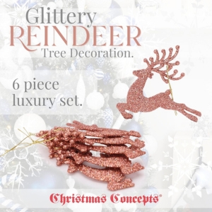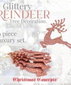 Add a touch of sparkle to your Christmas tree with these adorable glittery Reindeer baubles. You will receive a pack of 6 glittery rose gold reindeer baubles each measuring 100mm (4″). The baubles are lightweight and come with a string making them easy to hang on trees, garlands and displays. Whether you’re going for a traditional, rustic, or playful holiday theme, these reindeer baubles are sure to make spirits bright! Designed and manufactured exclusively for Christmas Concepts Ltd.
