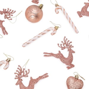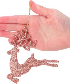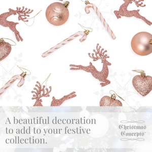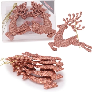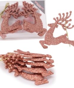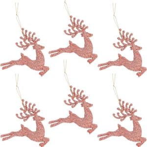 - You will receive a pack of 6 glittery rose gold reindeer baubles each measuring 100mm (4″).