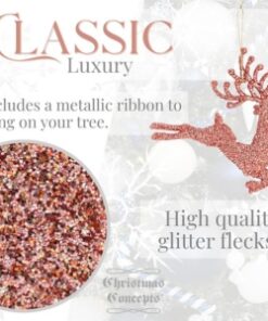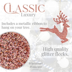 Christmas Concepts® 100mm (4″) Pack Of 6 Glittery Reindeer Baubles – Christmas Tree Decorations (Rose Gold)