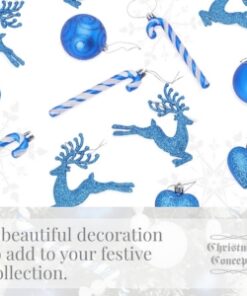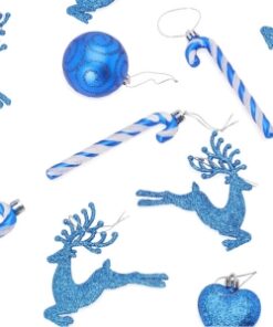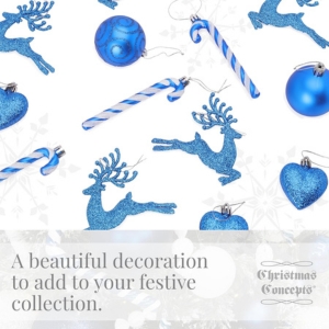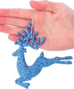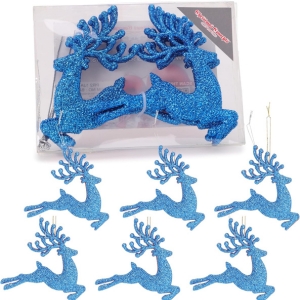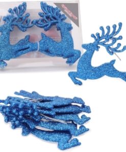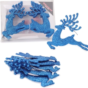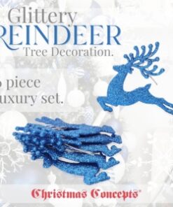 • You will receive a pack of 6 glittery royal blue reindeer baubles each measuring 100mm (4″).