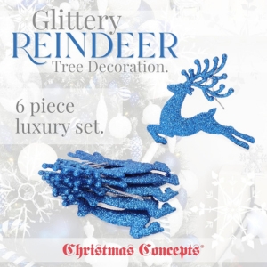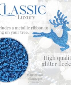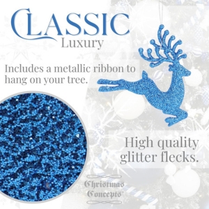 Christmas Concepts® 100mm (4″) Pack Of 6 Glittery Reindeer Baubles – Christmas Tree Decorations (Royal Blue)