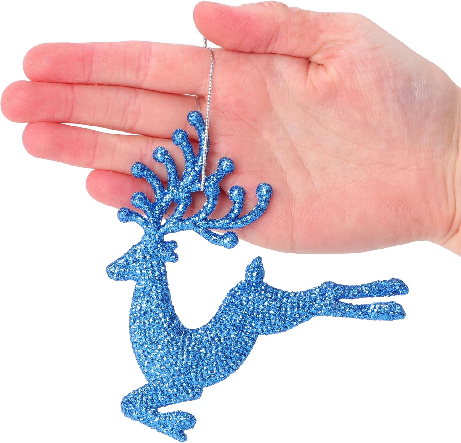 Christmas Concepts® 100mm (4") Pack Of 6 Glittery Reindeer Baubles - Christmas Tree Decorations (Royal Blue)