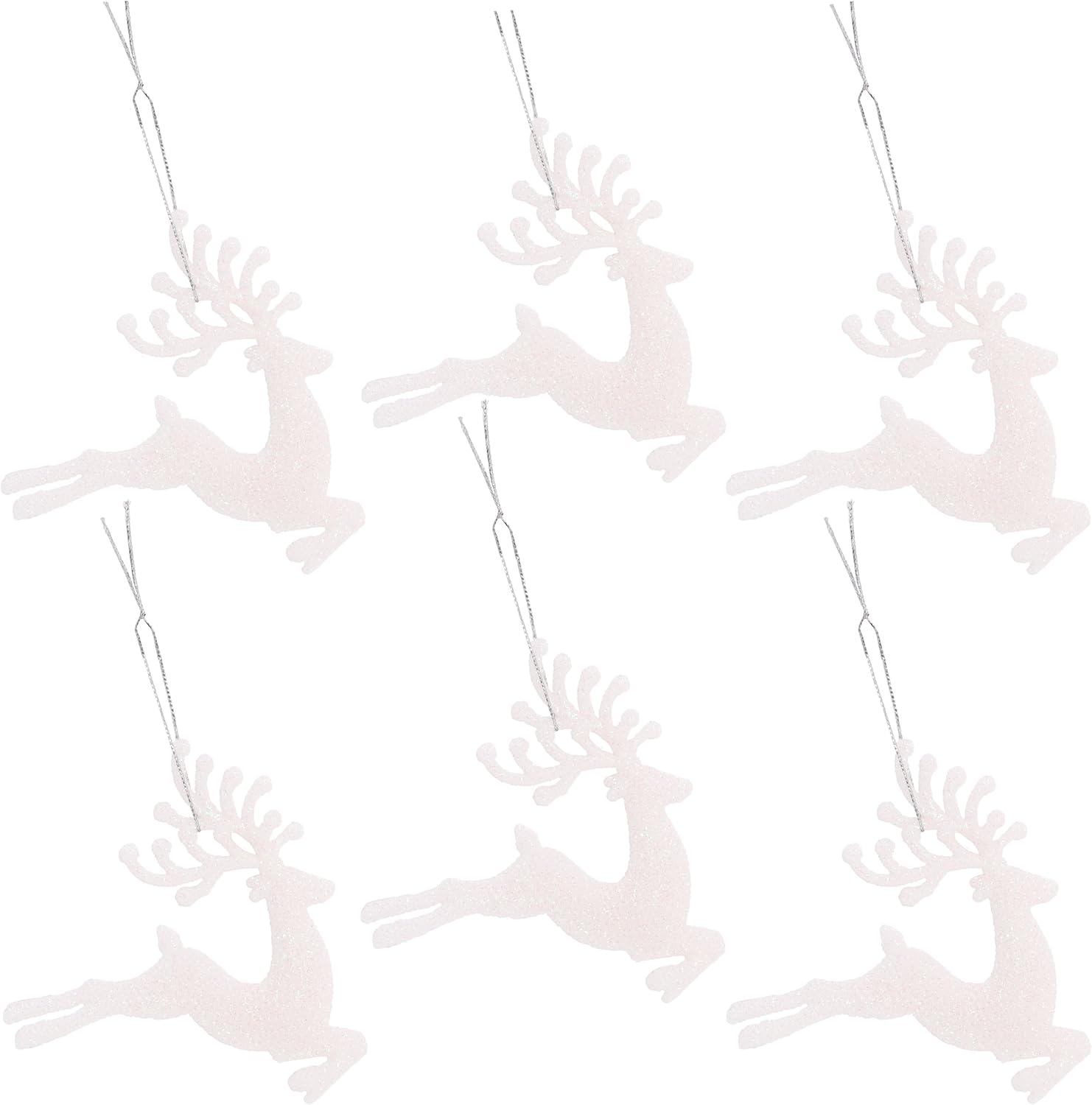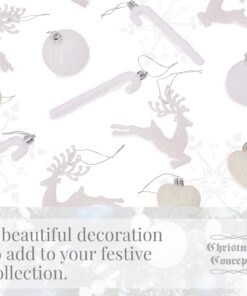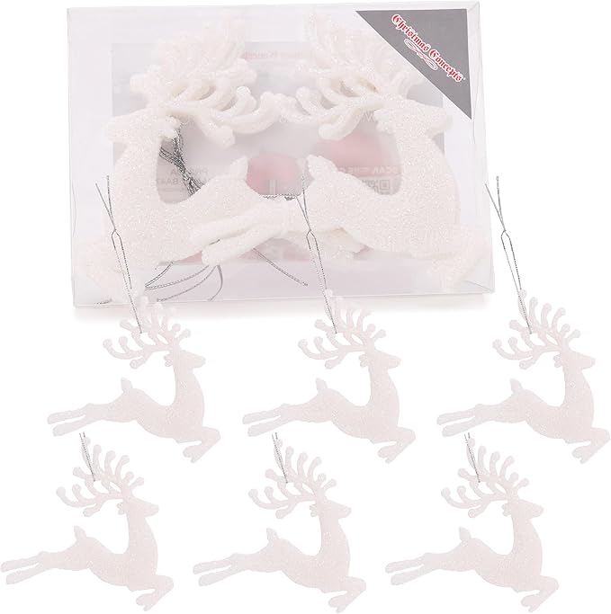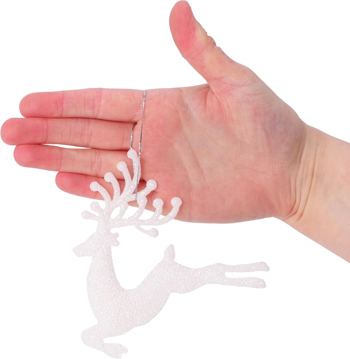 - You will receive a pack of 6 glittery white reindeer baubles each measuring 100mm (4″).