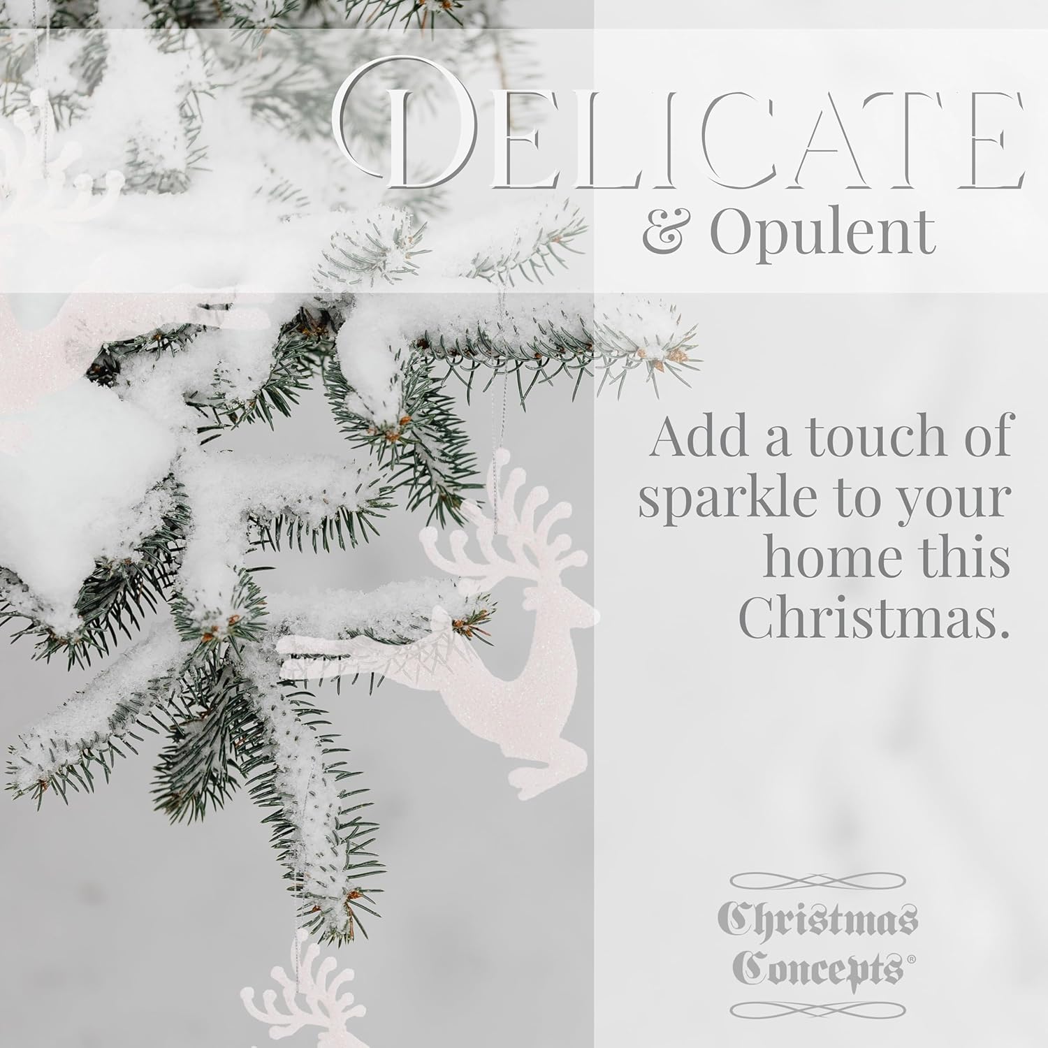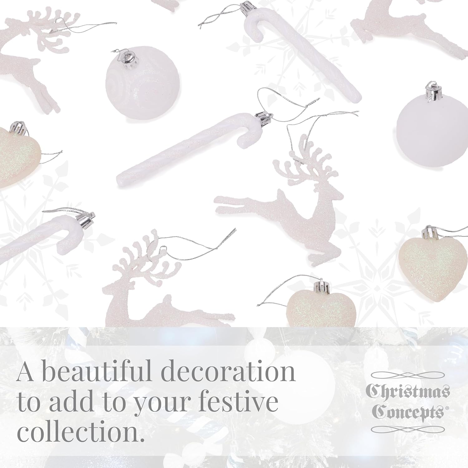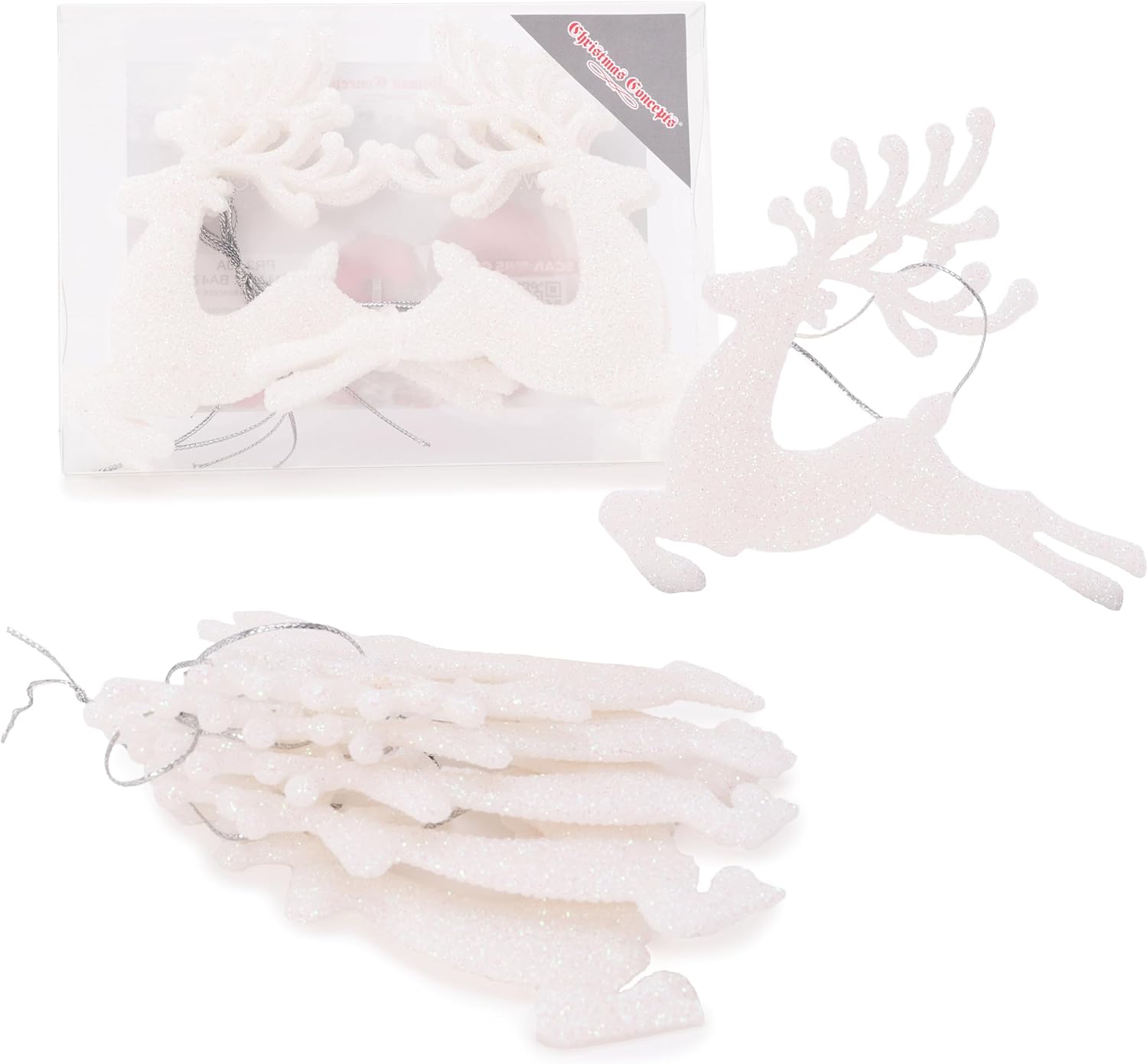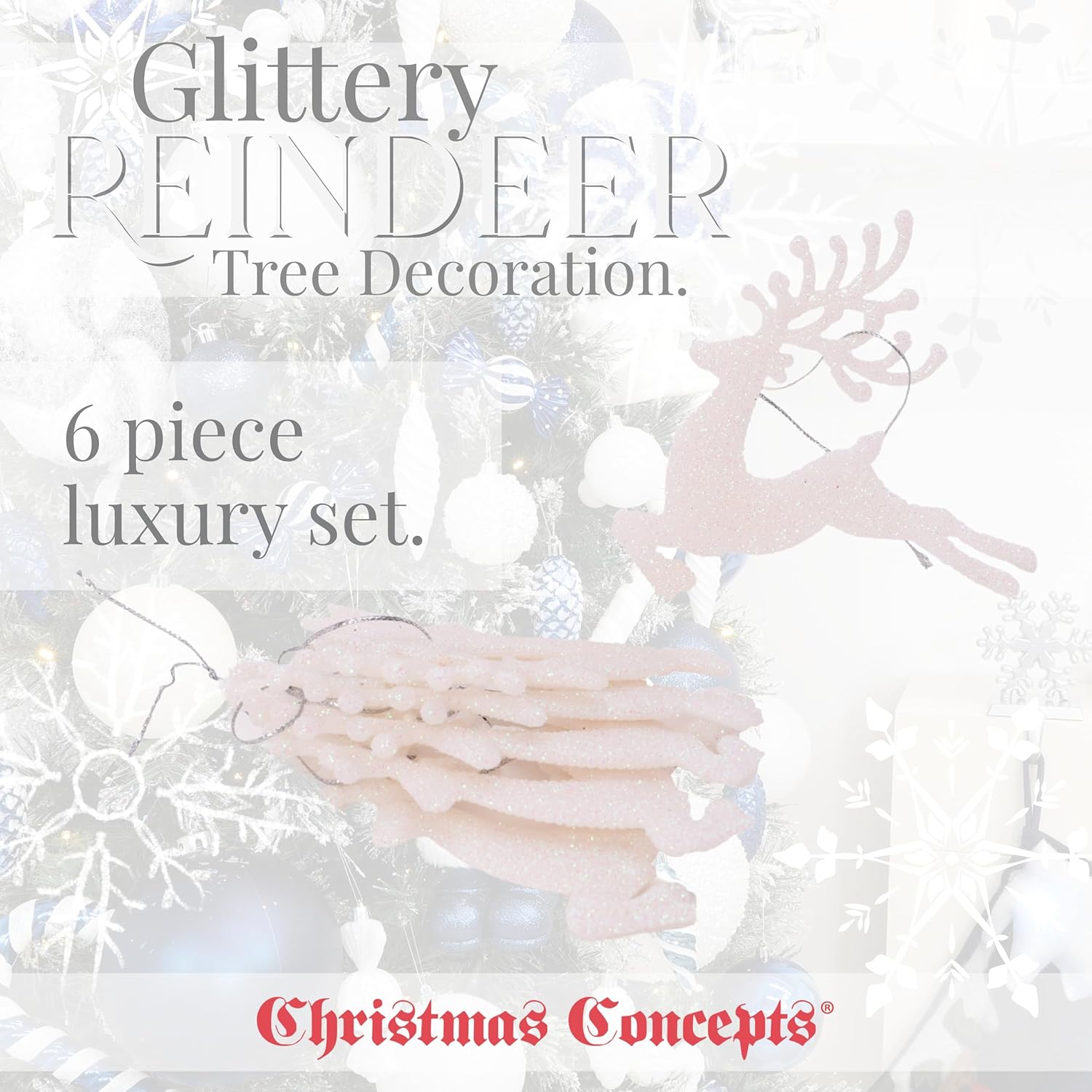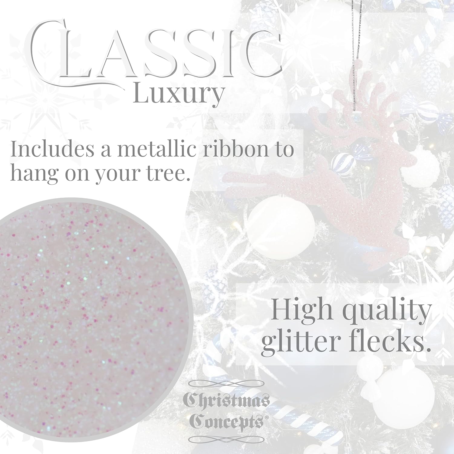 Christmas Concepts®100mm (4″) Pack Of 6 Glittery Reindeer Baubles – Christmas Tree Decorations (White)