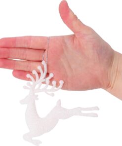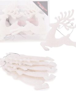 Add a touch of sparkle to your Christmas tree with these adorable glittery Reindeer baubles. You will receive a pack of 6 glittery white reindeer baubles each measuring 100mm (4″). The baubles are lightweight and come with a string making them easy to hang on trees, garlands and displays. Whether you’re going for a traditional, rustic, or playful holiday theme, these reindeer baubles are sure to make spirits bright! Designed and manufactured exclusively for Christmas Concepts Ltd.