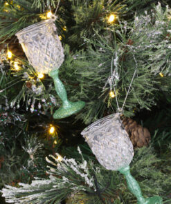 These glitter wine glasses are perfect for adding sparkle to your Christmas display this year. Each wine glass measures 10cm and the stem is covered in a fine glitter with silver hanging string attached. The wine glasses have an elegant, classy and realistic design which makes them a perfect accessory to any wine lovers display. These decorations would also be a great addition to any other event for added glitz and glamour! Designed and manufactured exclusively for Christmas Concepts Ltd