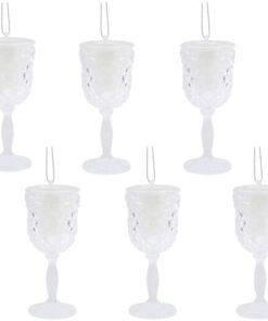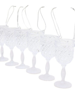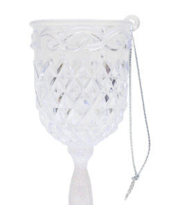 - These glitter wine glasses are perfect for adding sparkle to your Christmas display this year. Each wine glass measures 10cm and the stem is covered in a fine glitter with silver hanging string attached. The wine glasses have an elegant, classy and realistic design which makes them a perfect accessory to any wine lovers display. These decorations would also be a great addition to any other event for added glitz and glamour!