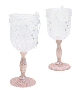 • These glitter wine glasses are perfect for adding sparkle to your Christmas display this year. Each wine glass measures 10cm and the stem is covered in a fine glitter with silver hanging string attached. The wine glasses have an elegant, classy and realistic design which makes them a perfect accessory to any wine lovers display. These decorations would also be a great addition to any other event for added glitz and glamour!