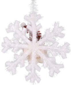 This lovely decoration would look great hung up in the window or on the wall at Christmas time. It would even be great to decorate a childs bedroom for the festive period. The snowflake is white with irredescent strands giving a sparkly look. The decoration measures 12 inches. Designed and manufactured exclusively for Christmas Concepts Ltd.