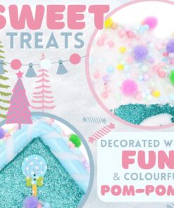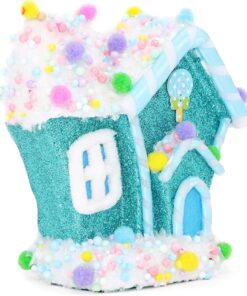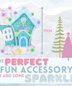 - The house measures 17 x 15 x 9cm and comes decorated with high quality turquoise glitter, colourful pom poms, polystyrene balls & ribbon.