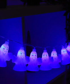 These are fantastic lights for Halloween. There are 20 ghost on the set. Each ghost measures approx. 8.5cm x 7cm and has a blue led light. The lights are on clear cable and there is approx. 50cm lead wire from the last light to the battery box. The set of lights require 2 AA batteries. (not included)