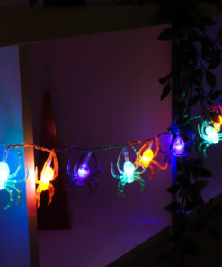 These are fantastic lights for Halloween. There are 20 multi coloured spiders on the set. Each spider measures approx. 6cm x 6cm and has a blue led light. The lights are on clear cable and there is approx. 50cm lead wire from the last light to the battery box. The set of lights require 2 AA batteries. (not included)
