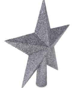 - This tree top star comes covered in high quality one tone shiny glitter.