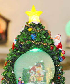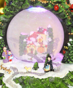 This fantastic decoration would look amazing at Christmas. The decoration features 8 Christmas songs. The main feature of the decoration is the water globe which lights up and snows. It is battery operated so no trailing wires. It takes 3AA batteries which are not included. The lights are led lights which are very bright, low voltage and energy efficient. This means your batteries will last longer! The lights are also colour changing which means they change from one colour to another. It has a 3 way switch so it can be left off, switched on with music and on without music. Product size: 17cm x 17cm x 22.9cm.