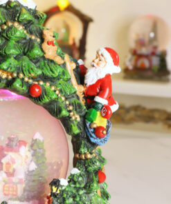 - The decoration features 8 Christmas songs. The main feature of the decoration is the water globe which lights up and snows.