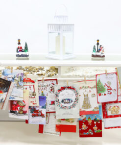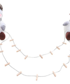 A card holder designed specially for a mantle piece. It could also be placed on a window ledge or table. The card holder includes a Snowman at each side, weighted with sand. The 2 silver strings between the figures measure approx 1m and 1.5m. The card holder comes with 30 wooden pegs to attach the cards with. Designed and manufactured exclusively for Christmas Concepts Ltd.