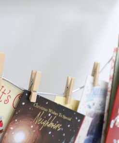 - The card holder comes with 30 wooden pegs to attach the cards with.